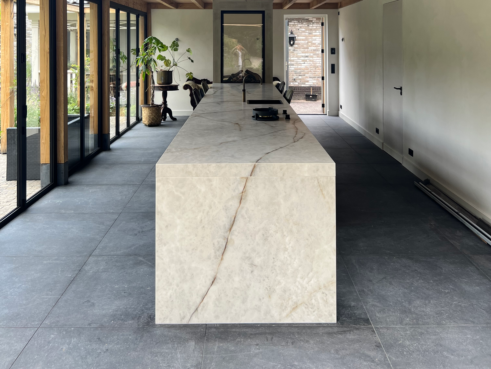Wij leveren een zeer uitgebreid en breed scala aan bladen in natuursteen, composiet, keramiek, marmer, dekton en dergelijke. Daarnaast beschikken we over een riant assortiment accessoires en mogelijkheden.